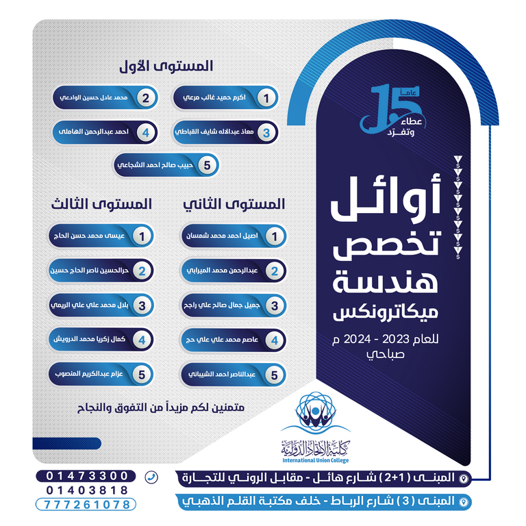 شهادة التخرج: دبلوم فني هندسة ميكاترونكس.