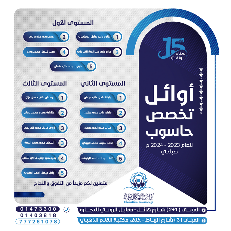 شهادة التخرج: دبلوم فني في علوم الحاسوب.